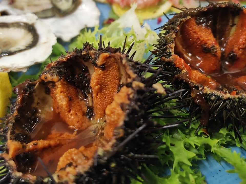 Gambero rosso*, Pesto di Agrumi, Ricci di mare*, Filetti di pomodoro, Aglio, Prezzemolo,